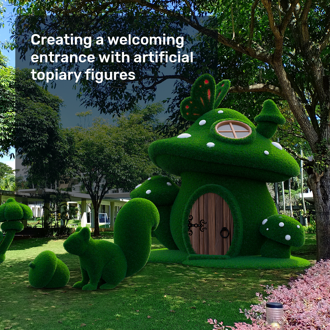 - Use topiary figures to frame the entrance: You can use artificial topiary figures to create a natural-looking frame around the entrance of your property. This can help to draw the eye towards the entrance, creating a sense of grandeur and elegance.